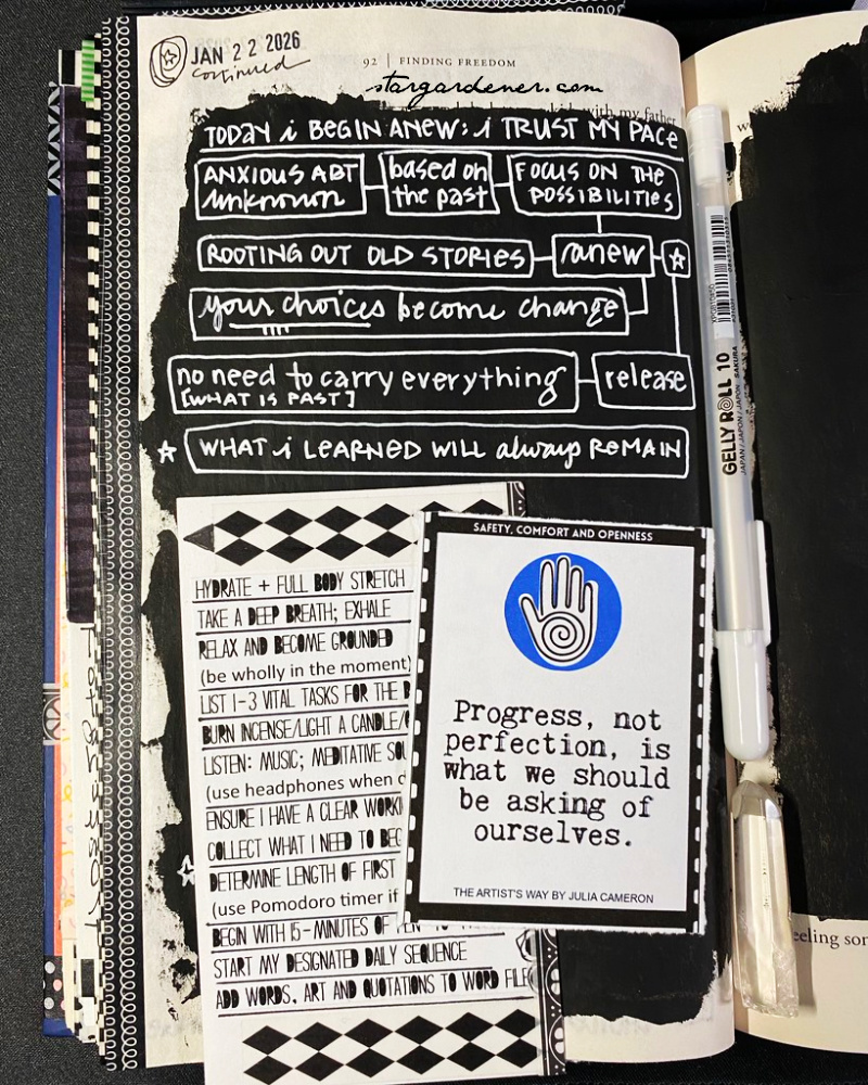 I hold space (and “edit for accuracy”) by being on the pages of my journal-planners; adding handwritten entries (and collage) for clarity and as a prayer, as a way of making my living tangible as I cycle like the 🌙 moon.